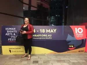 Amanda representing the team at the Human Rights and Arts Film Festival in Melbourne.